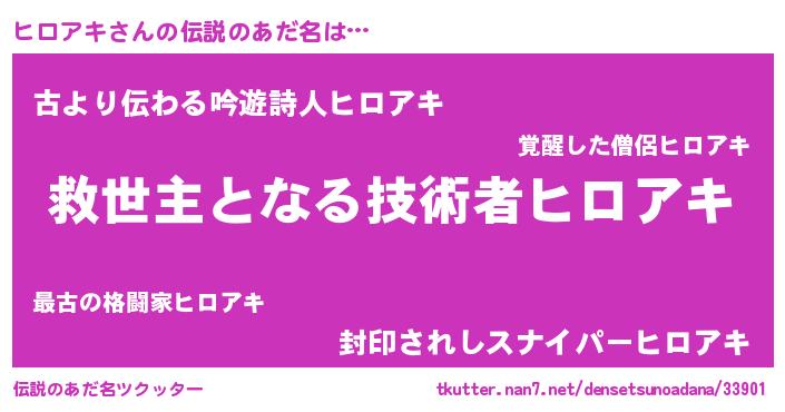 | 意味不明あだ名 | 『自称ヒロアキ』『永久保存ヒロアキ』 |