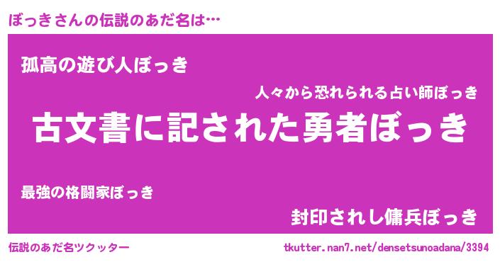 | ヒーロー風カッコイイあだ名 | 『ネオボッキ』『魔戒騎士ボッ』 |
