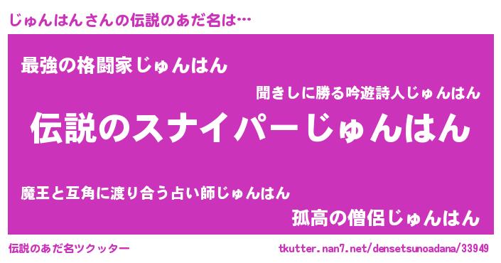 | 意味不明あだ名 | 『自称じゅんはん』『ペロリンじゅんはん』 |