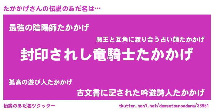 | 意味不明あだ名 | 『住所不定無職たかかげ(13歳)』 |