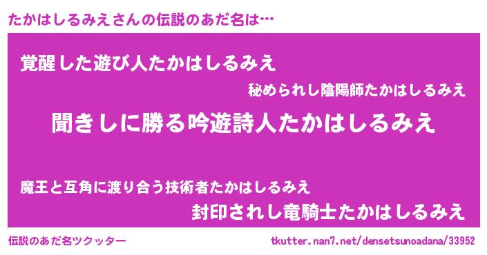 | 男性向けラノベタイトル風あだ名 | 『たかはしるみえという概念が存在しない退屈な世界 』 |