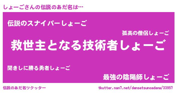 | 男性向けラノベタイトル風あだ名 | 『Re:しょーごから始める異世界生活』 |