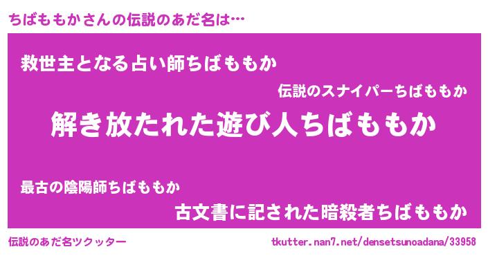 | 女子向けラノベタイトル風あだ名 | 『乙女ゲームの破滅フラグしかない悪役ちばももかに転生してしまった…』 |