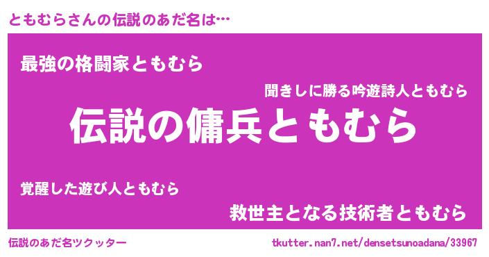 | 男性向けラノベタイトル風あだ名 | 『魔弾の王とともむら』 |