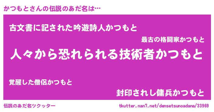 | 男性向けラノベタイトル風あだ名 | 『緋弾のカツモト』『カツモトスレイヤー』 |