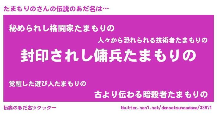 | 胡散臭い通販商品みたいなあだ名 | 『億万長者になれる水晶球…その名も「たまもりの」』 |