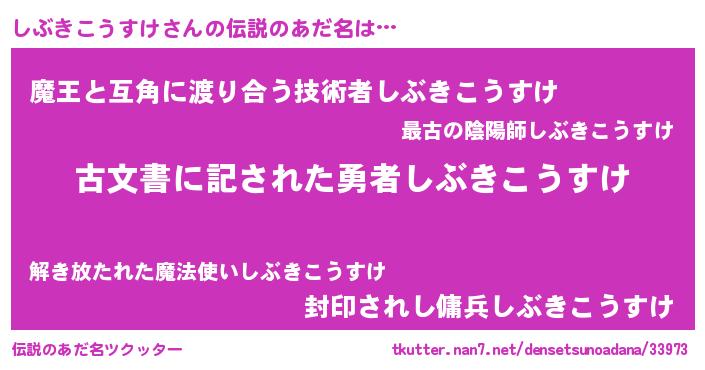 | 男性向けラノベタイトル風あだ名 | 『しぶきこうすけに滅ぼされるだけの簡単なお仕事です』 |
