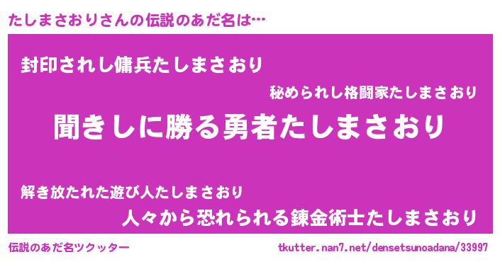 | 意味不明あだ名 | 『住所不定無職たしまさおり(84歳)』 |