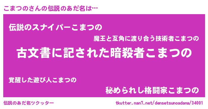 | 男性向けラノベタイトル風あだ名 | 『こまつのに滅ぼされるだけの簡単なお仕事です』 |