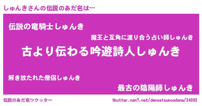 | 男性向けラノベタイトル風あだ名 | 『冴えないしゅんきの育てかた』 |