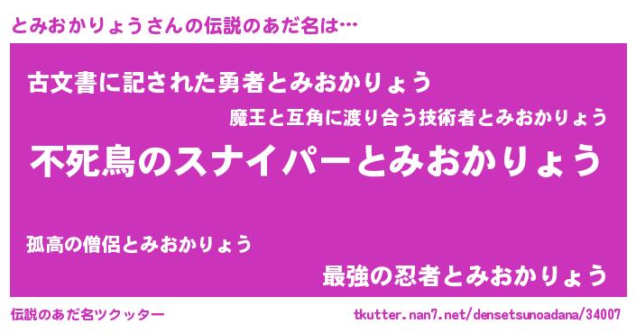 | ヒーロー風カッコイイあだ名 | 『スーパートミオカリョウ』 |