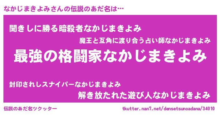| 意味不明あだ名 | 『なかじまきよみフォーエバー』 |