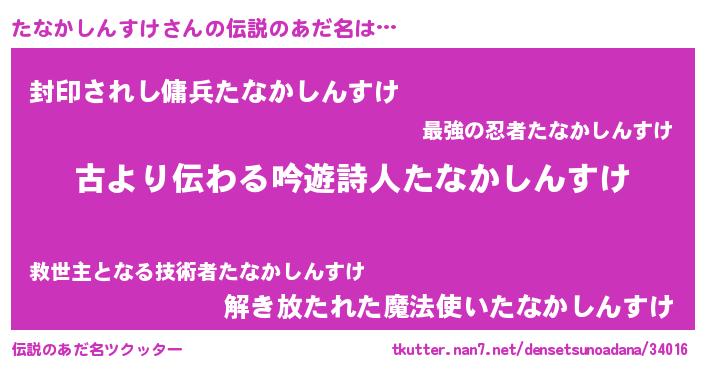 | 意味不明あだ名 | 『永久保存たなかしんすけ』 |