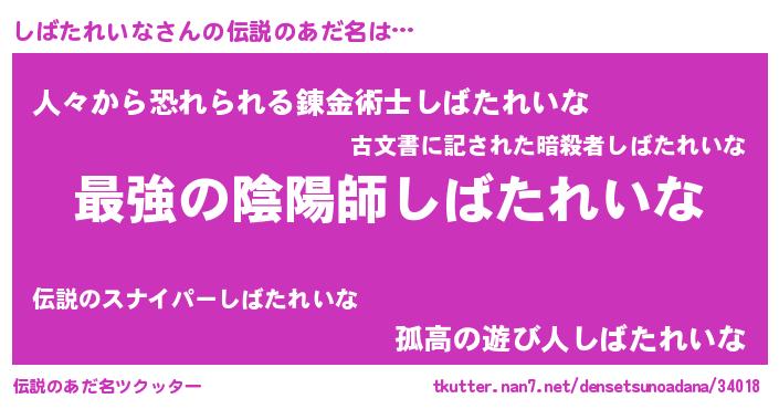 | ファンタジー風あだ名 | 『エターナルシバタレイナー』 |