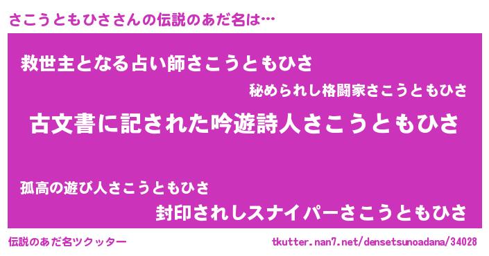 | 意味不明あだ名 | 『永久保存さこうともひさ』 |