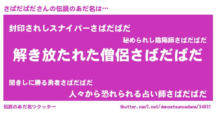 | 意味不明あだ名 | 『とにかく怪しいさばだばだ』 |