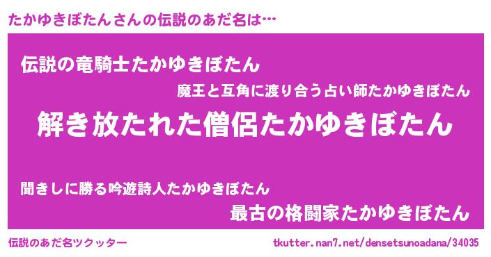 | 男性向けラノベタイトル風あだ名 | 『ダンジョンにたかゆきぼたんを求めるのは間違っているだろうか』 |