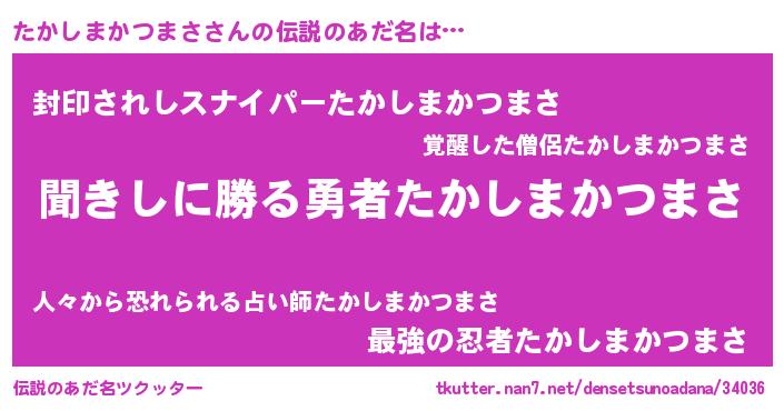 | 男性向けラノベタイトル風あだ名 | 『タカシマカツマサスレイヤー』 |