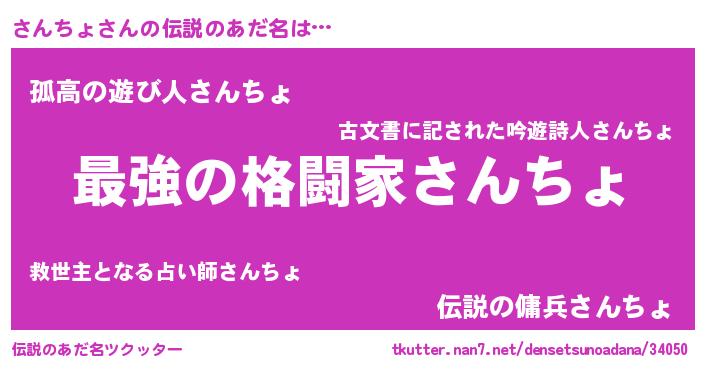 | 男性向けラノベタイトル風あだ名 | 『Re:さんちょから始める異世界生活』 |