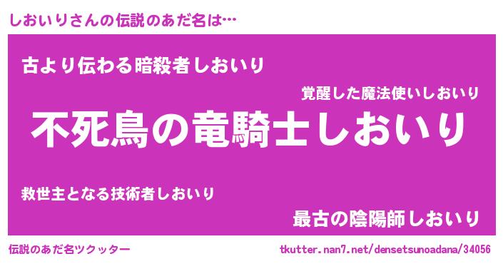 | 男性向けラノベタイトル風あだ名 | 『魔弾の王としおいり』『しおいりの憂鬱』 |