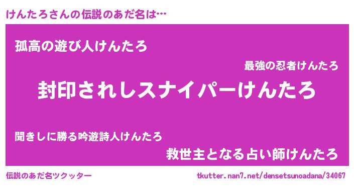 | 胡散臭い通販商品みたいなあだ名 | 『億万長者になれる霊験あらたかなお札…その名も「けんたろ」』 |