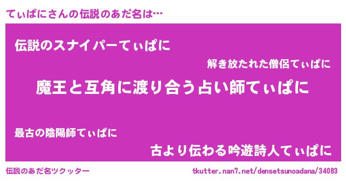 | ヒーロー風カッコイイあだ名 | 『慈愛の使者てぃぱに』『ネオティパニ』 |