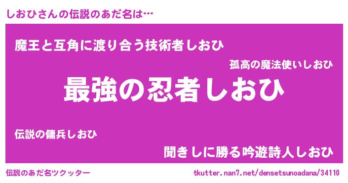 | 男性向けラノベタイトル風あだ名 | 『この素晴らしい世界にしおひを!』 |