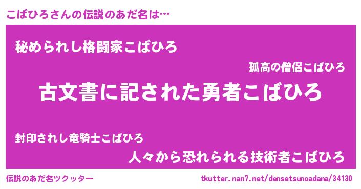 | ヒーロー風カッコイイあだ名 | 『ネオコバヒロ』『ウルトラこばひろマン』 |