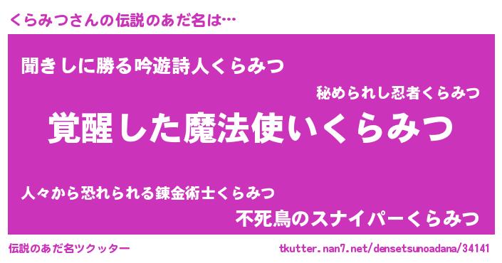 | ヒーロー風カッコイイあだ名 | 『天弓騎士クラ』『ネオクラミツ』 |
