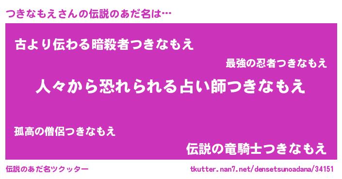 | 意味不明あだ名 | 『自称つきなもえ』『永久保存つきなもえ』 |