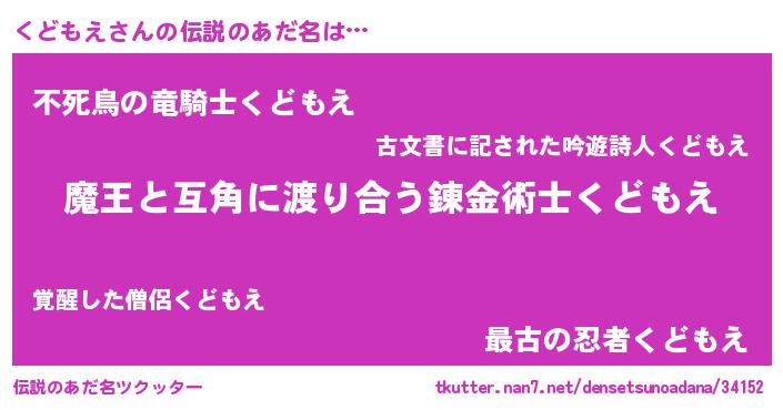 | 意味不明あだ名 | 『住所不定無職くどもえ(85歳)』 |