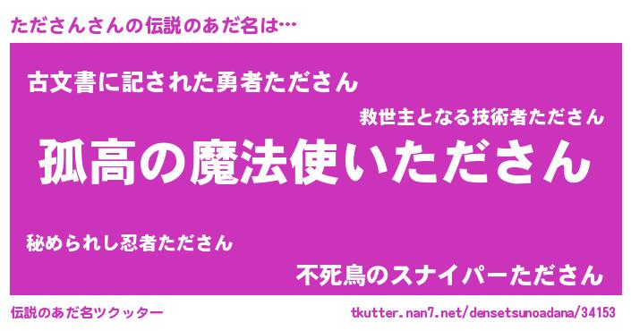 | 胡散臭い通販商品みたいなあだ名 | 『信頼と実績のサプリメント…その名も「たださん」』 |