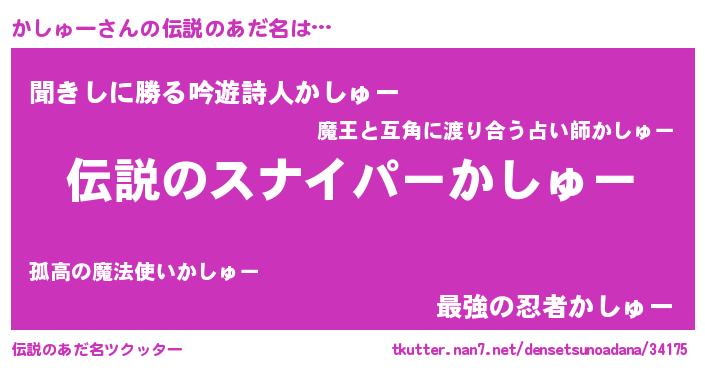 | 胡散臭い通販商品みたいなあだ名 | 『必ず成功する霊験あらたかなお札…その名も「かしゅー」』 |