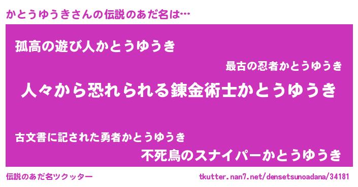 | 男性向けラノベタイトル風あだ名 | 『おまえをオタクにしてやるから、俺をかとうゆうきにしてくれ! 』 |