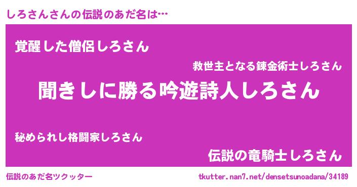 | 女子向けラノベタイトル風あだ名 | 『異世界で失敗しない100のしろさん』 |