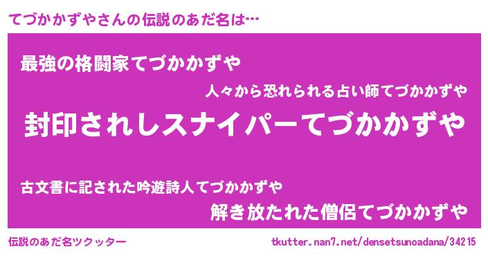 | 意味不明あだ名 | 『住所不定無職てづかかずや(86歳)』 |