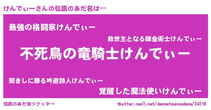 | 女子向けラノベタイトル風あだ名 | 『けんでぃー姫と円卓の騎士』 |