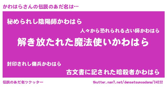 | 意味不明あだ名 | 『とにかく怪しいかわはら』 |