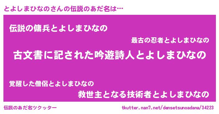 | 男性向けラノベタイトル風あだ名 | 『誰もが恐れるあのとよしまひなのが、ぼくの専属メイドになるようです。』 |