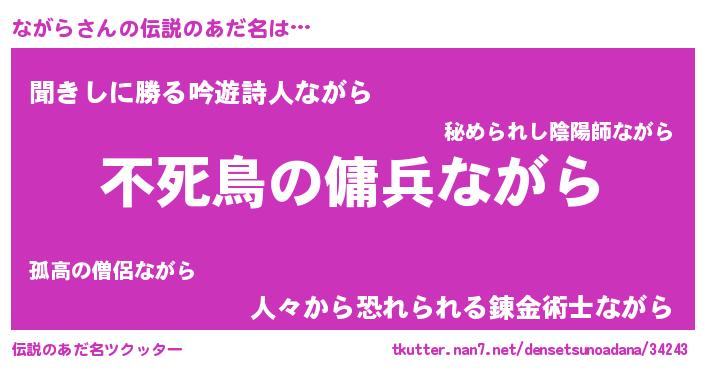 | 胡散臭い通販商品みたいなあだ名 | 『モテモテ間違いなし水晶球…その名も「ながら」』 |