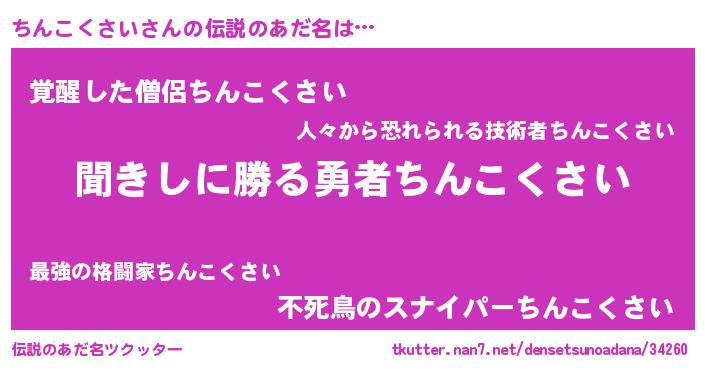 | ピコ太郎風あだ名 | 『ピコチ郎』『チン二郎』『チコ十郎』 |