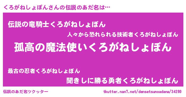 | ヒーロー風カッコイイあだ名 | 『暗黒騎士クロ』『仮面クロダー』 |