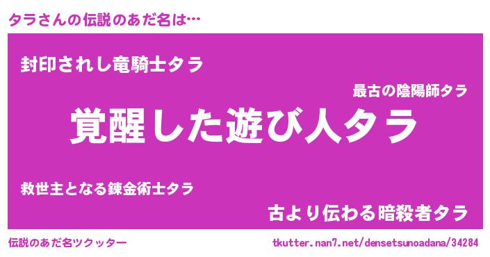 | ヒーロー風カッコイイあだ名 | 『幻影騎士タラ』『スーパータラ』 |