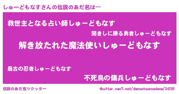 | 男性向けラノベタイトル風あだ名 | 『しゅーどもなすに滅ぼされるだけの簡単なお仕事です』 |