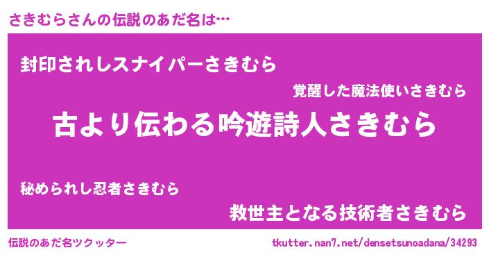| ヒーロー風カッコイイあだ名 | 『ウルトラ戦士サキムラ』『ネオサキムラ』 |