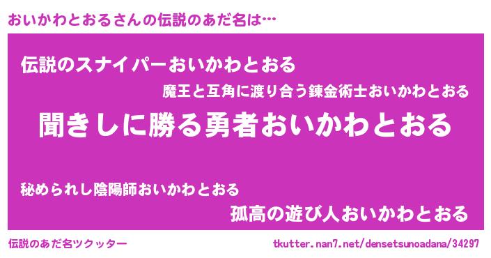 | ヘコむあだ名 | 『おいかわとおる(苦笑)』『おいにゅー』 |