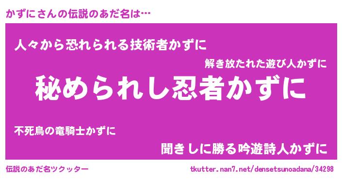 | 意味不明あだ名 | 『住所不定無職かずに(68歳)』『自称かずに』 |