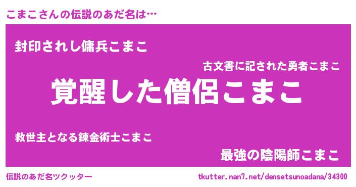 | 男性向けラノベタイトル風あだ名 | 『こまこ~年齢イコール彼女いない歴の魔法使い~』 |