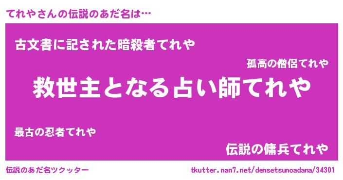 | 意味不明あだ名 | 『住所不定無職てれや(40歳)』『自称てれや』 |