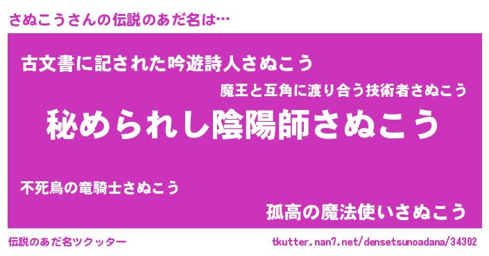 | 男性向けラノベタイトル風あだ名 | 『やはりさぬこうの青春ラブコメはまちがっている 』 |